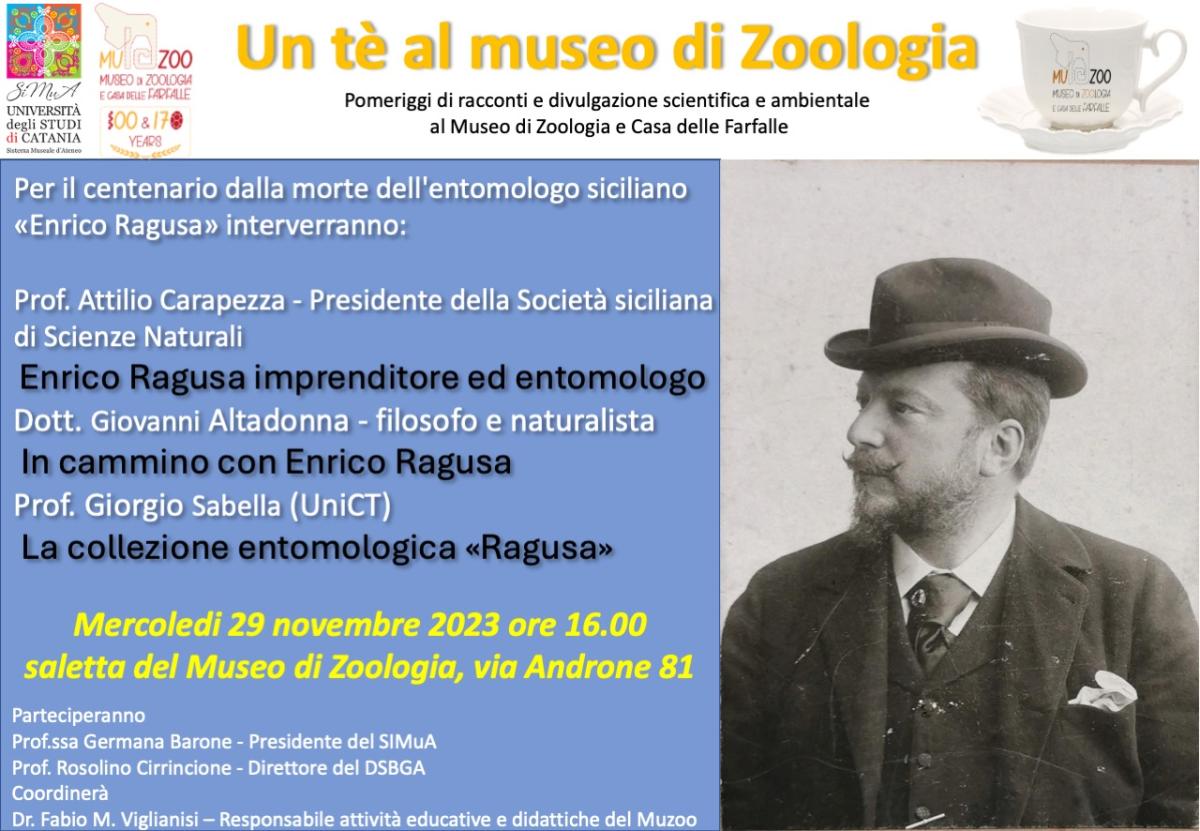 Mercoledì 29 novembre alle 16, nell'Aula Clementi (via Androne 81, Catania), si svolge l'iniziativa "Per il centenario dalla morte dell'entomologo siciliano Enrico Ragusa", organizzata dal Museo di Zoologia e Casa delle Farfalle.